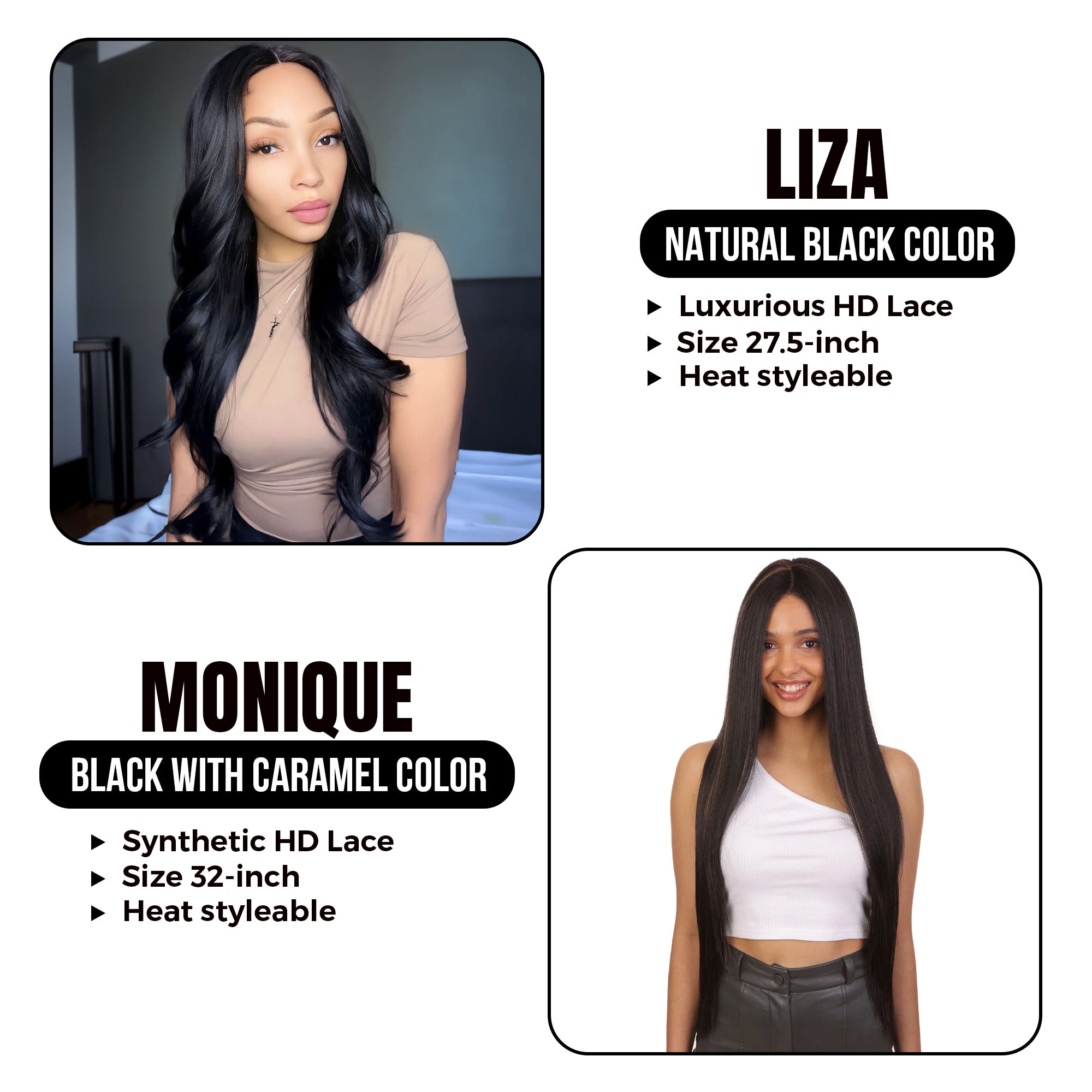 Straight & Stunning combo: Liza:27.5" Mid-part HD Lace Front Wavy Wig with Baby Hair|| Monique:32-Inch Long 360 Degree HD Lace Front Wig-Default Title-