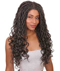 Considering locs? Why lock yourself into one look! Slip into Andrea's wavy woven faux locs with bouncy and dense strands to easily switch up your style. See natural-looking results and save hours in the salon with HD lace that dissolves into the skin to give you a bohemian look.